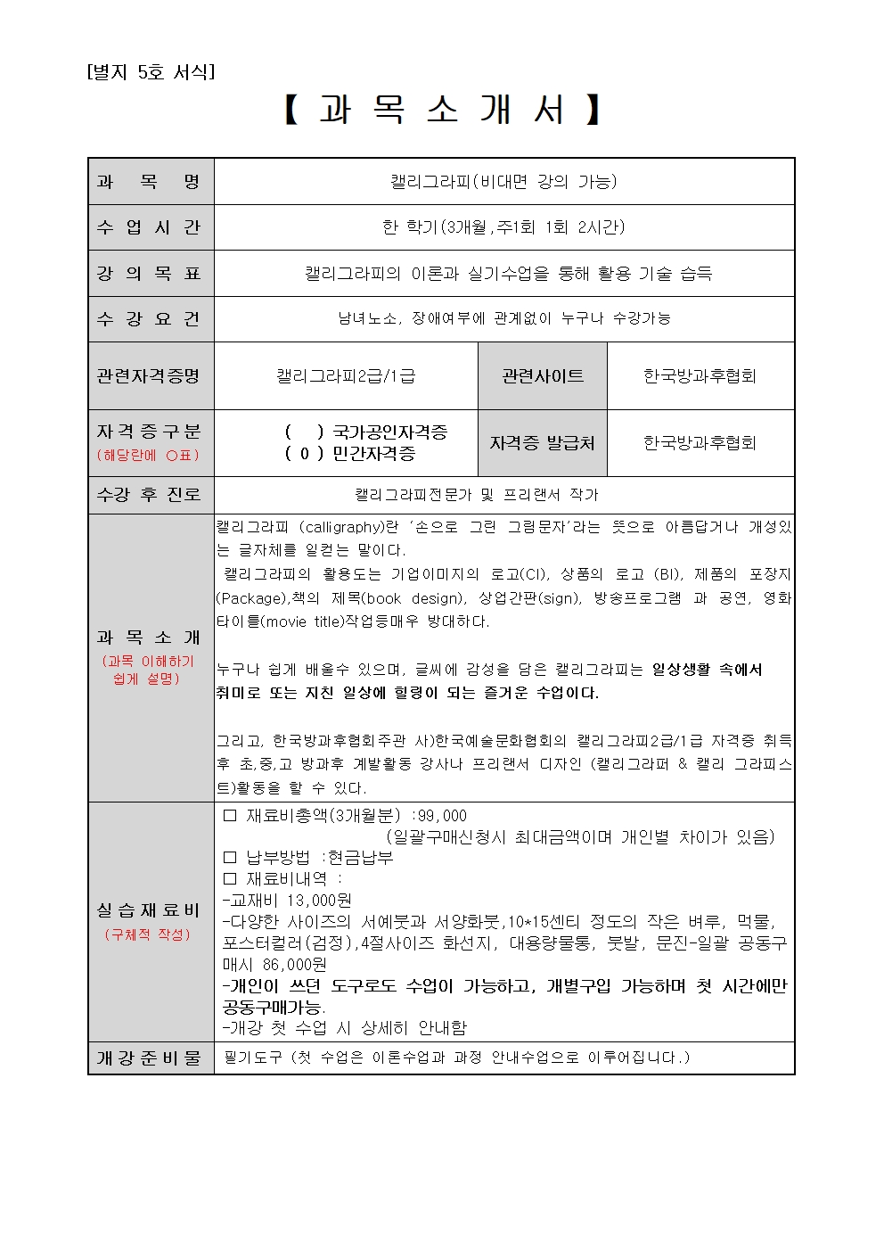 이체시 이름+캘리(과목명) 함께 써주셔야 하며 미작성시 문자로 연락주시면