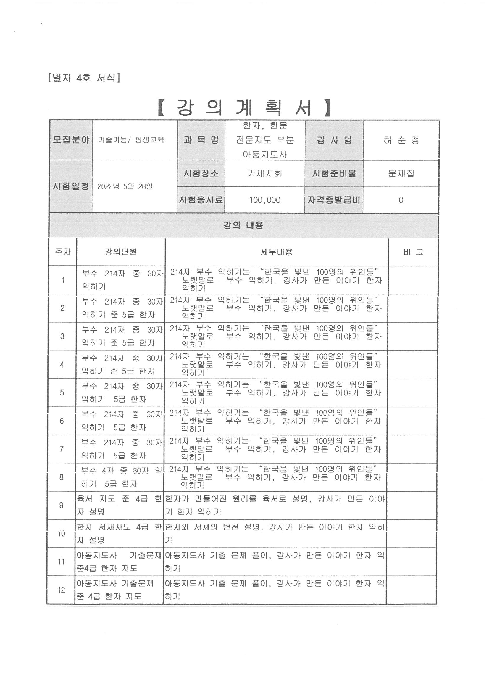 이체시 이름+한자(과목명)함께 써주셔야하며,