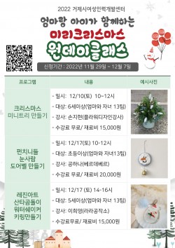 * 접수는 11월 29일(화)오전10시~ 12월 7일(수) 18시 선착순입니다.