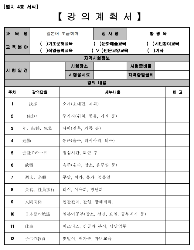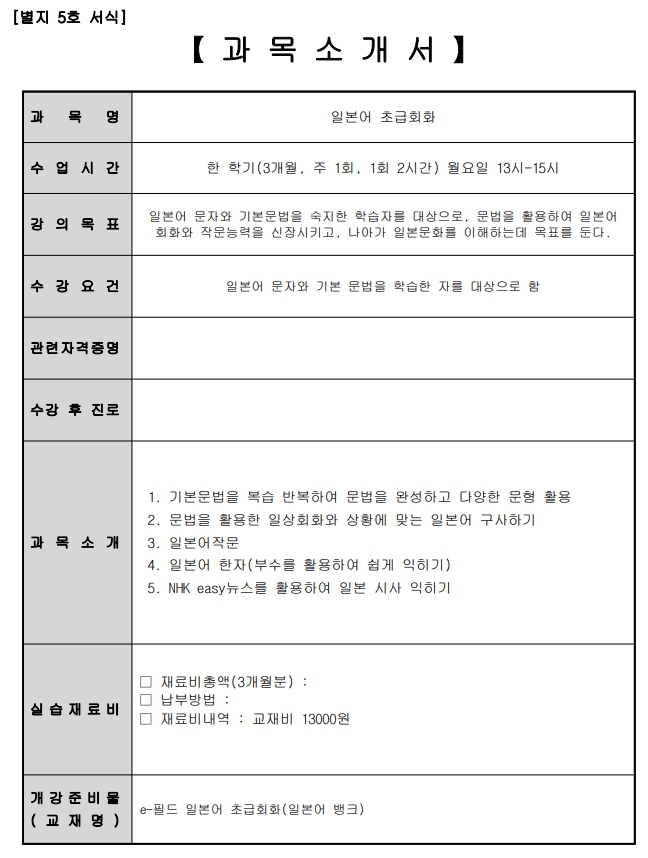 이체시 이름+일본(과목명)함께 써주셔야하며,