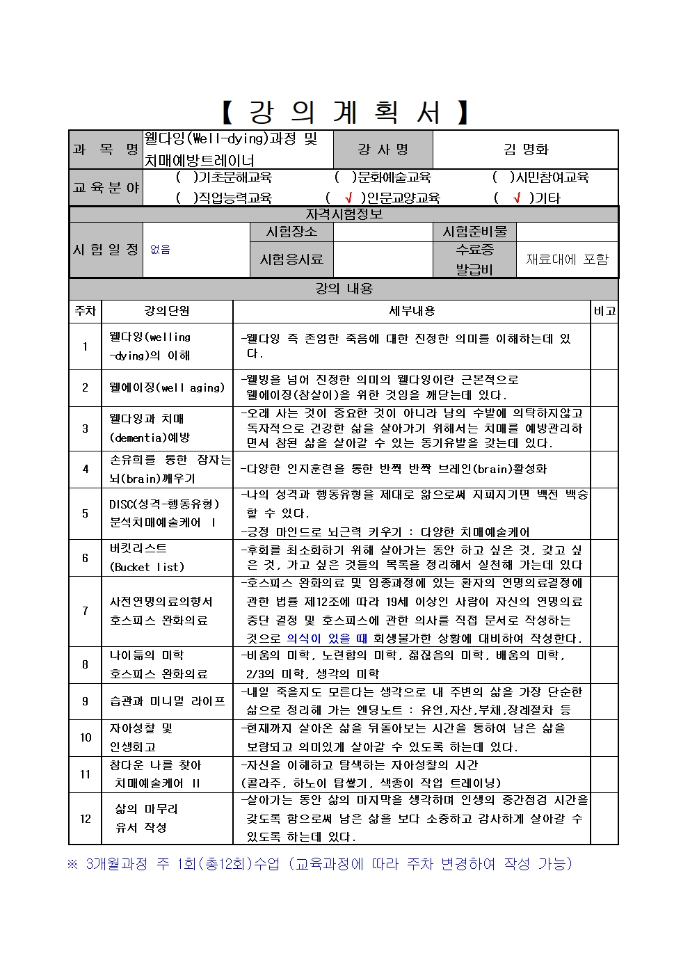 이체시 이름+웰다잉(과목명)함께 써주셔야하며,
