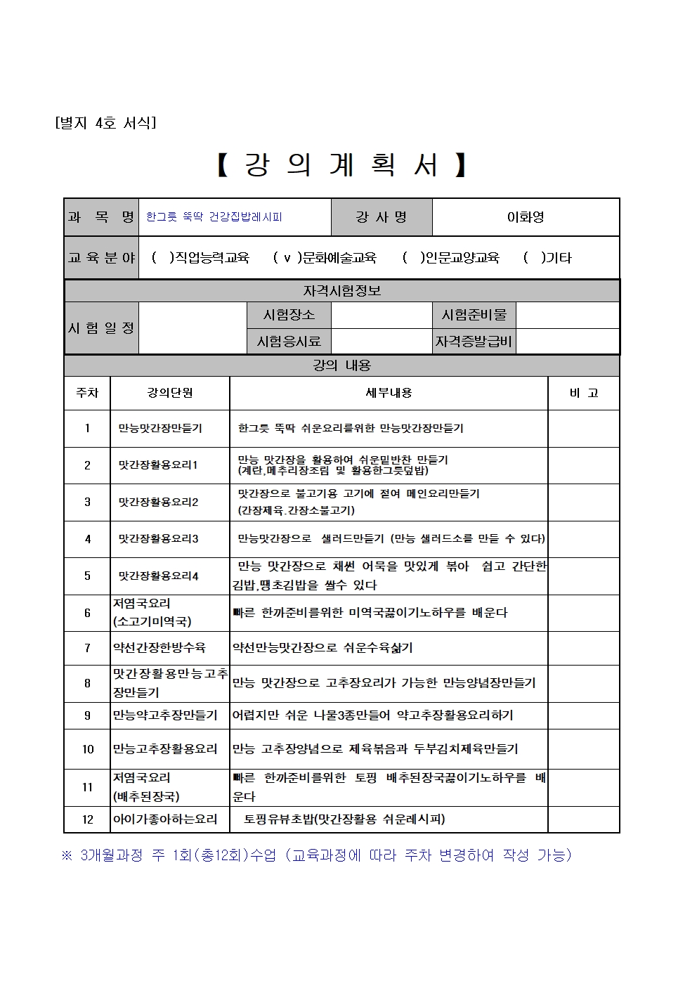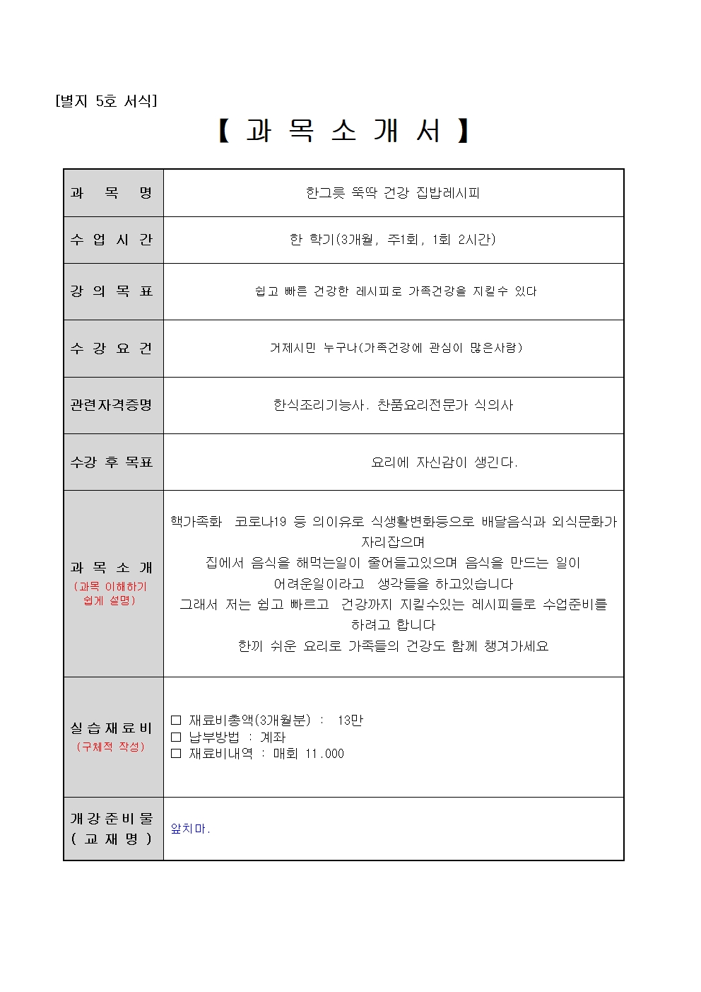 이체시 이름+집밥(과목명)함께 써주셔야하며,