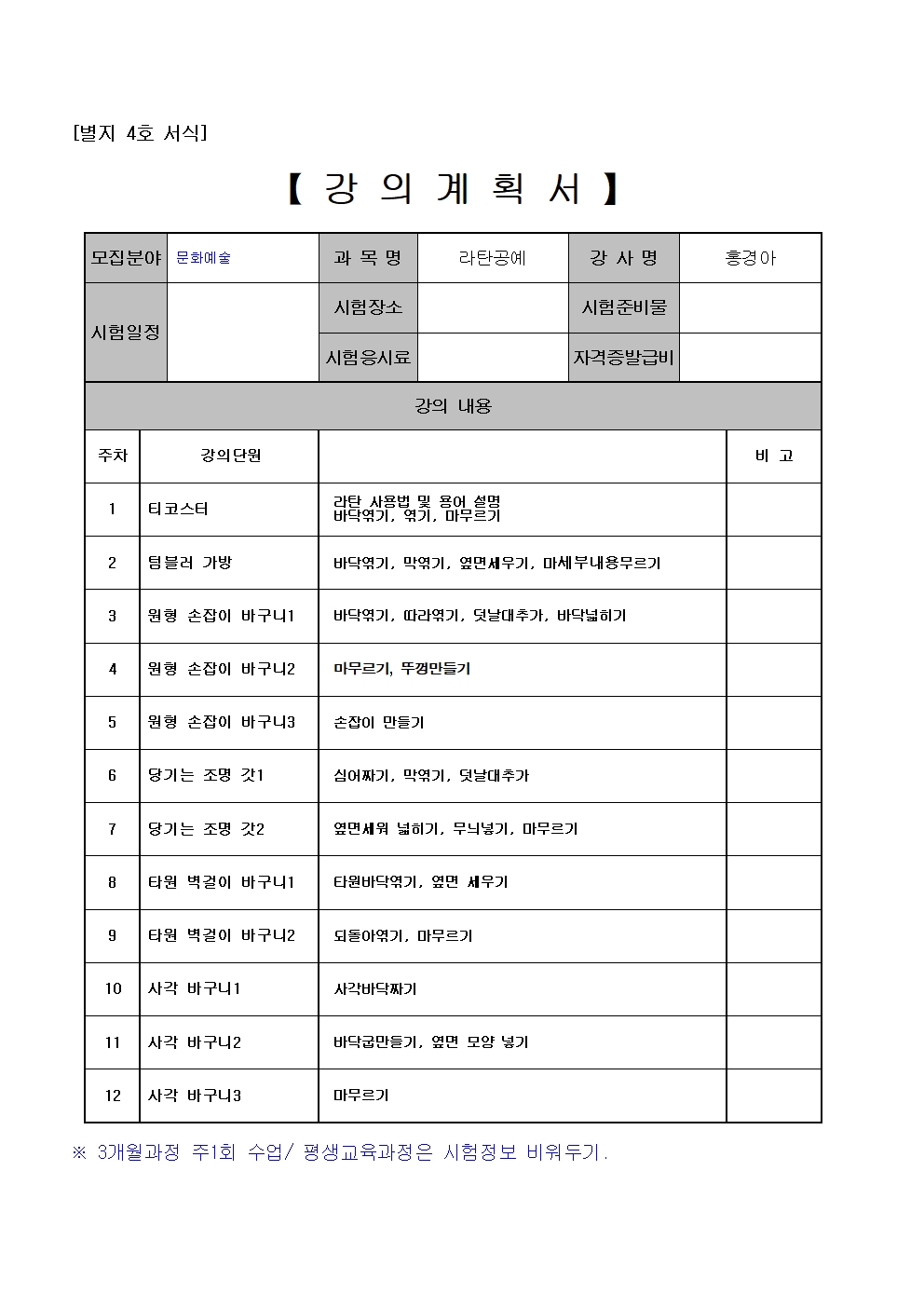 이체시 이름+라탄(과목명)함께 써주셔야하며,
