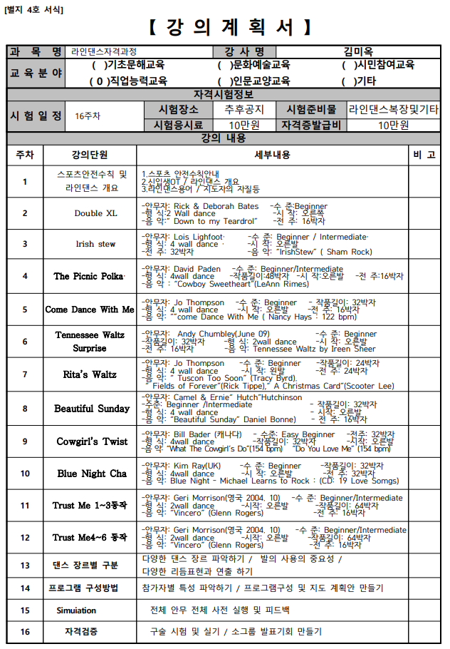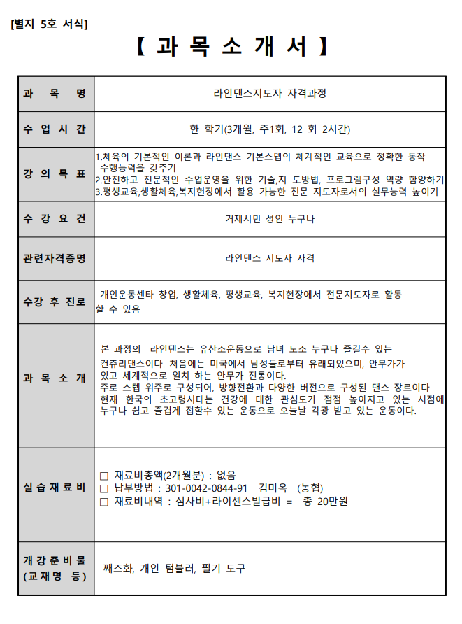 [직업능력교육] 라인댄스지도자 자격과정(야간)