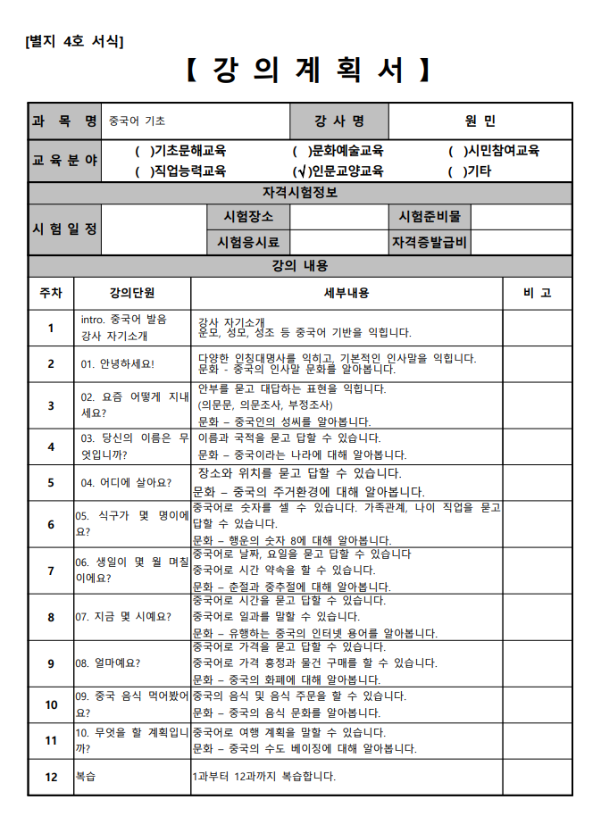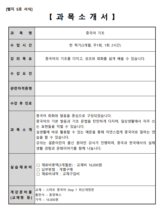 교재는 스마트중국어 step1/ 동양북스 입니다.