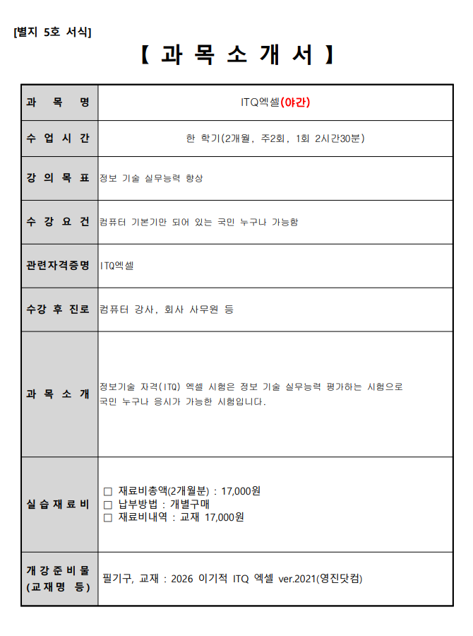 * 교재는 2026 이기적 ITQ엑셀 ver.2021 / 영진닷컴 입니다.