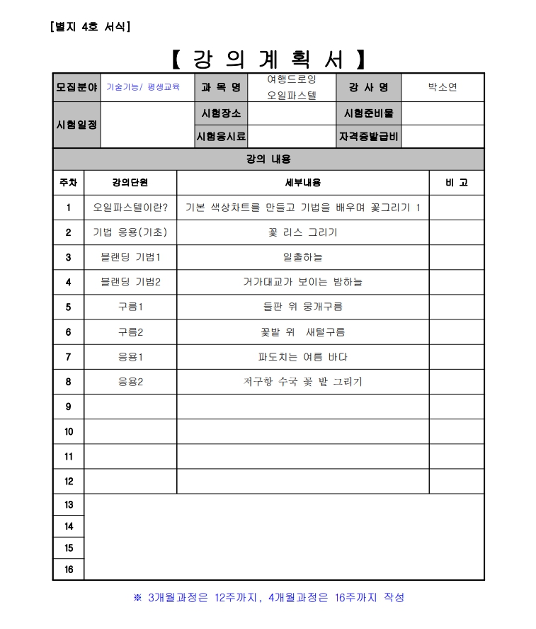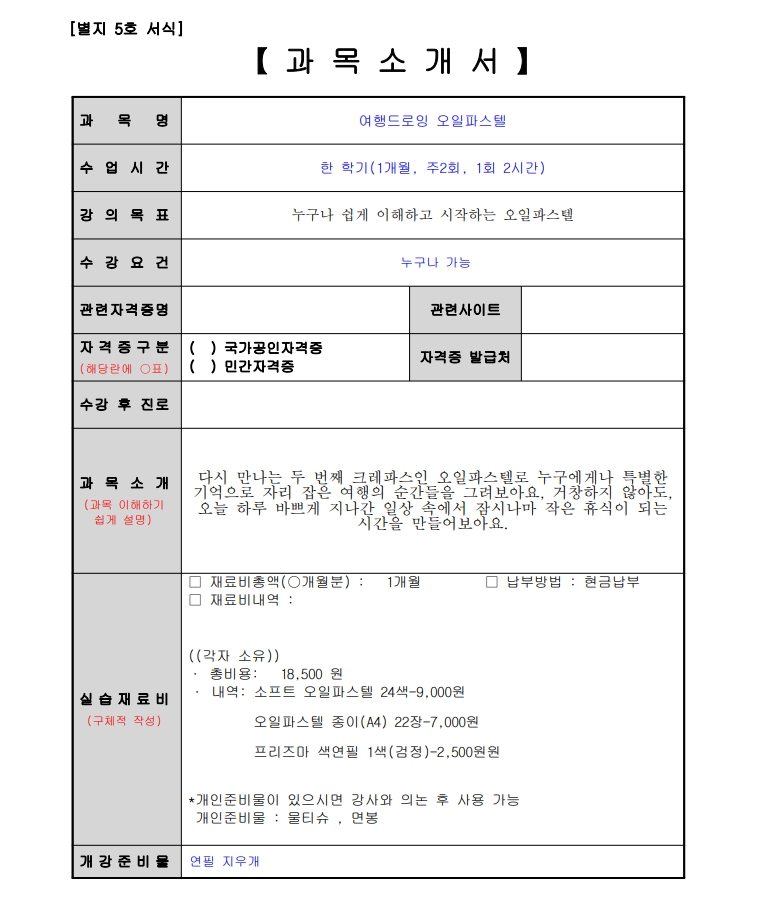 * 재료비는 수강후 선생님께 납입부탁드립니다.
