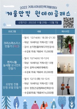 * 접수는 11월 29일(화)오전10시~ 12월 7일(수) 18시 선착순입니다.