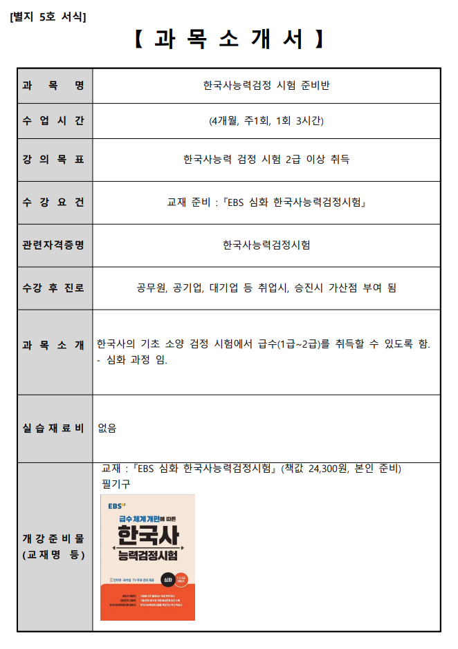 이체시 이름+한국사(과목명)함께 써주셔야하며,