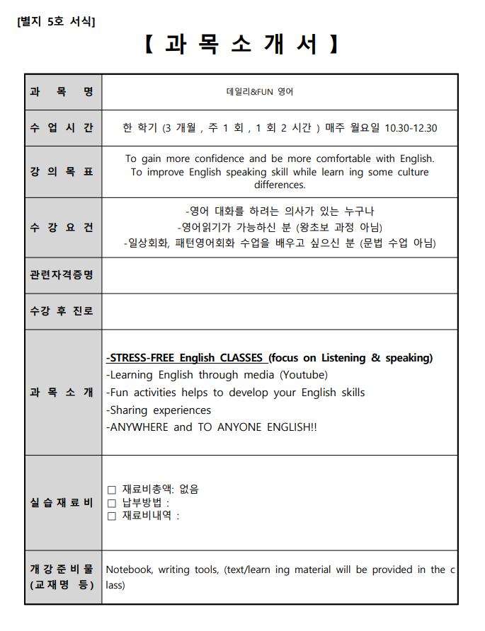 ※ 왕초보반이 아닙니다. "영어 읽으실 수 있는 분들" 접수 바랍니다.