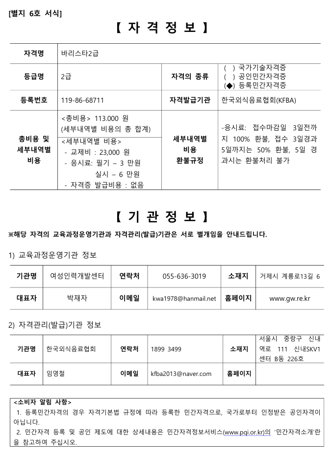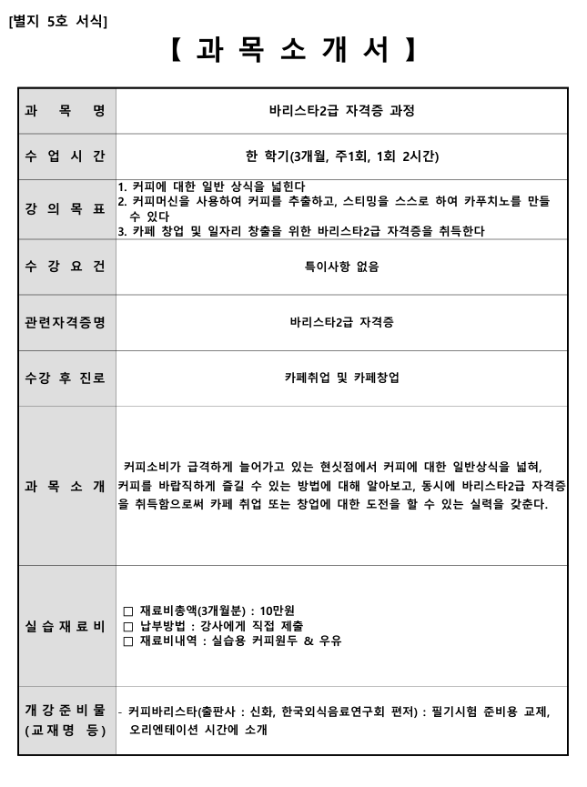 바리스타 수업은 연초에 있는 "커피소사이어티"에서 진행됩니다.