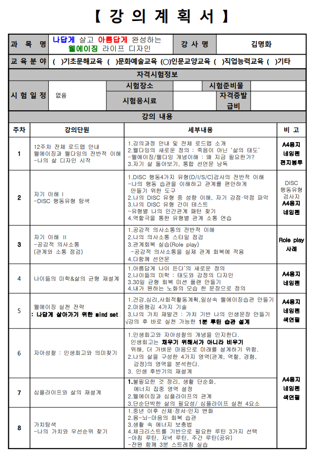 [인문교양교육] 나답게 살기 위한 웰에이징(야간)