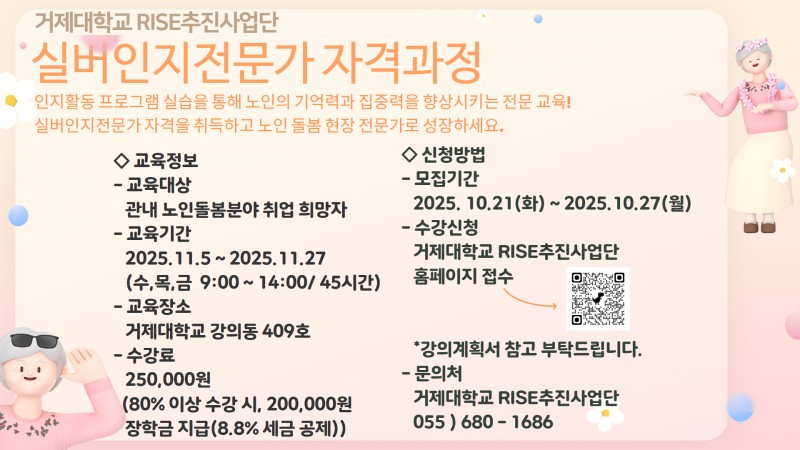 '실버인지전문가 자격과정' 교육생을 모집합니다.